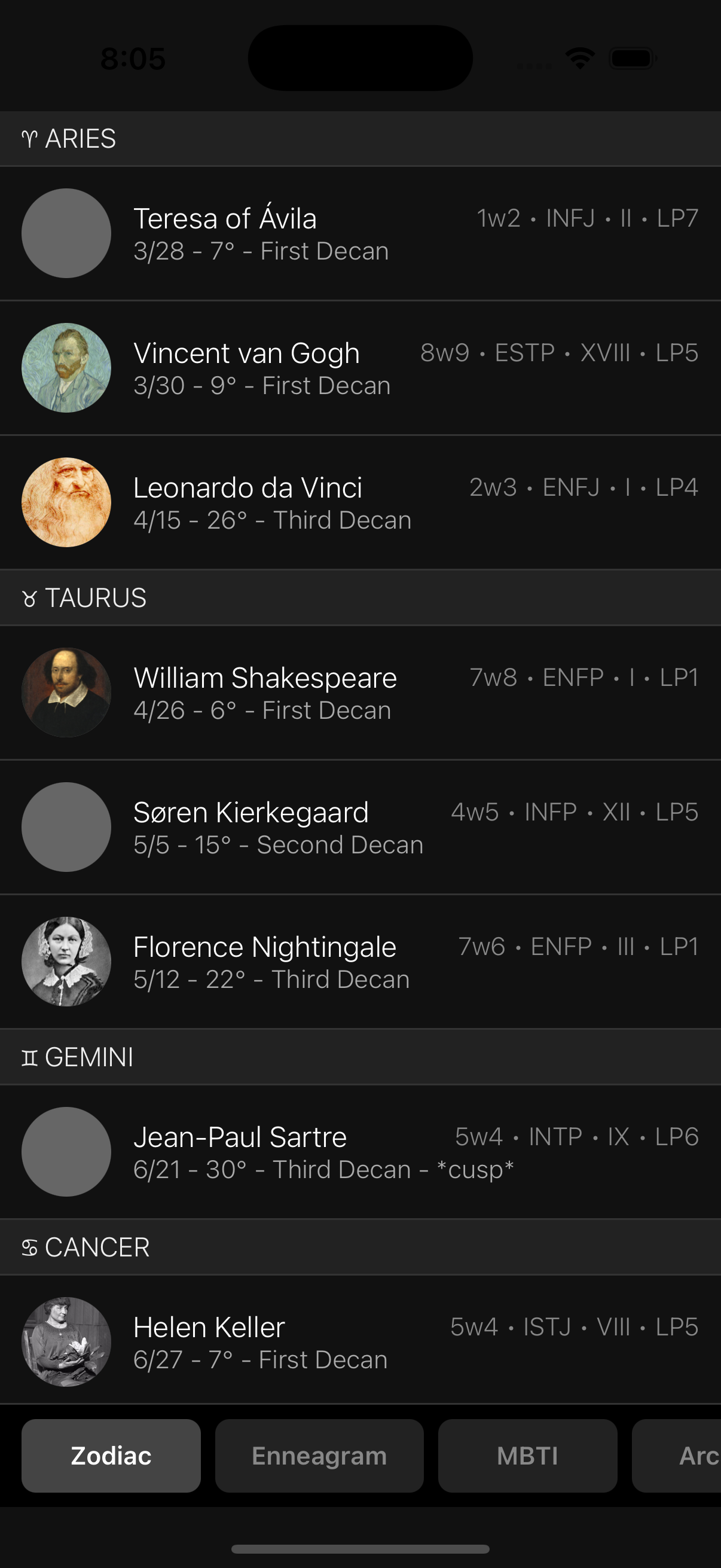Zodiac, Enneagram, MBTI, Arcana, Numerology, more?