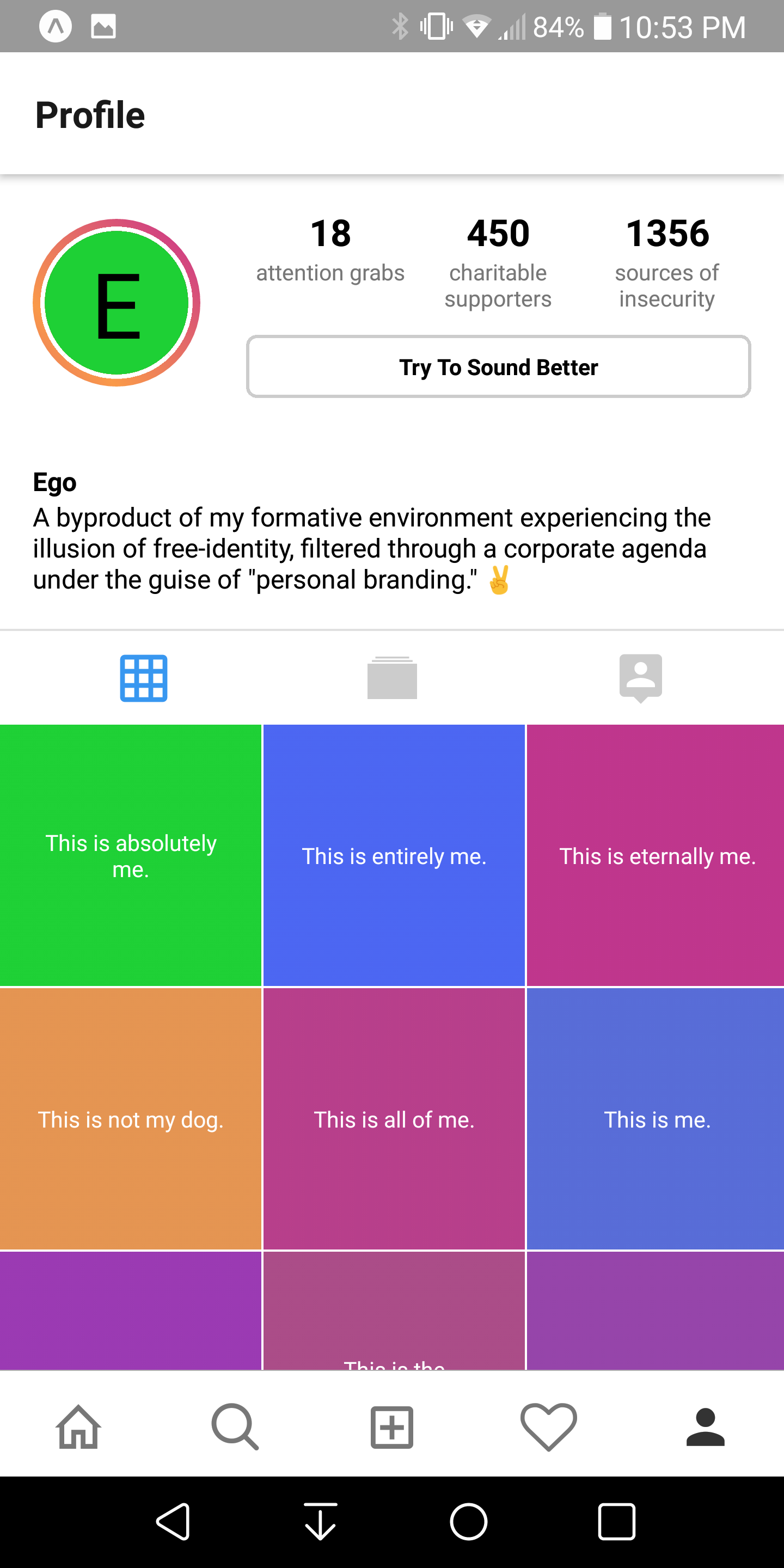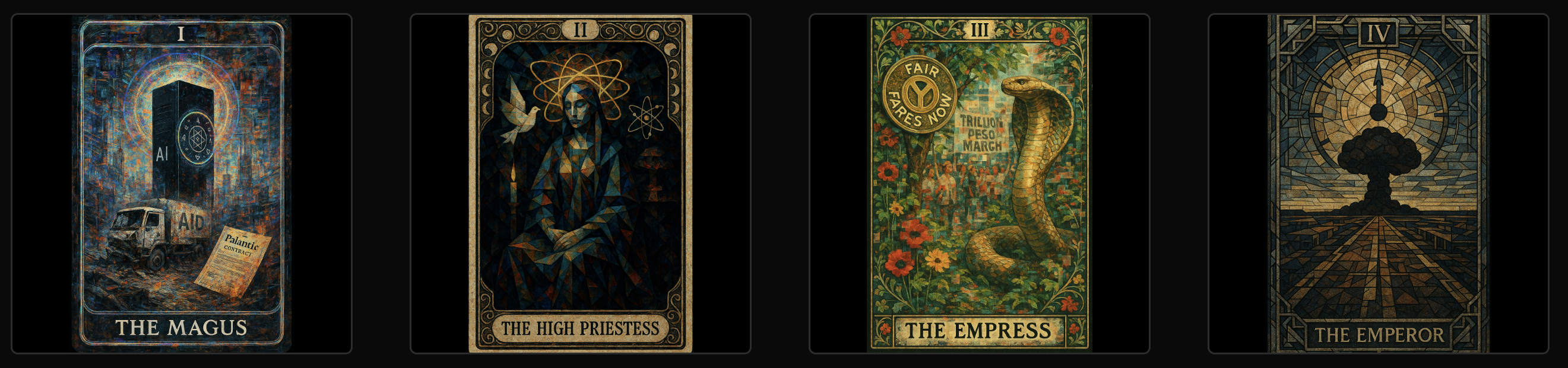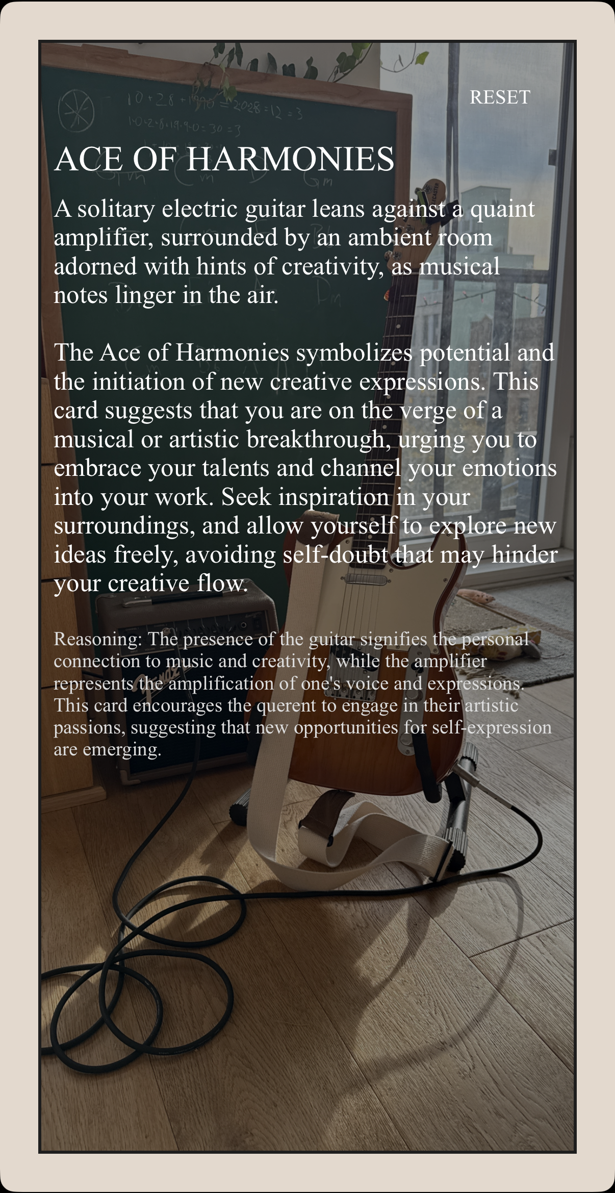 Originally a half-sarcastic tarot deck that interpreted each card