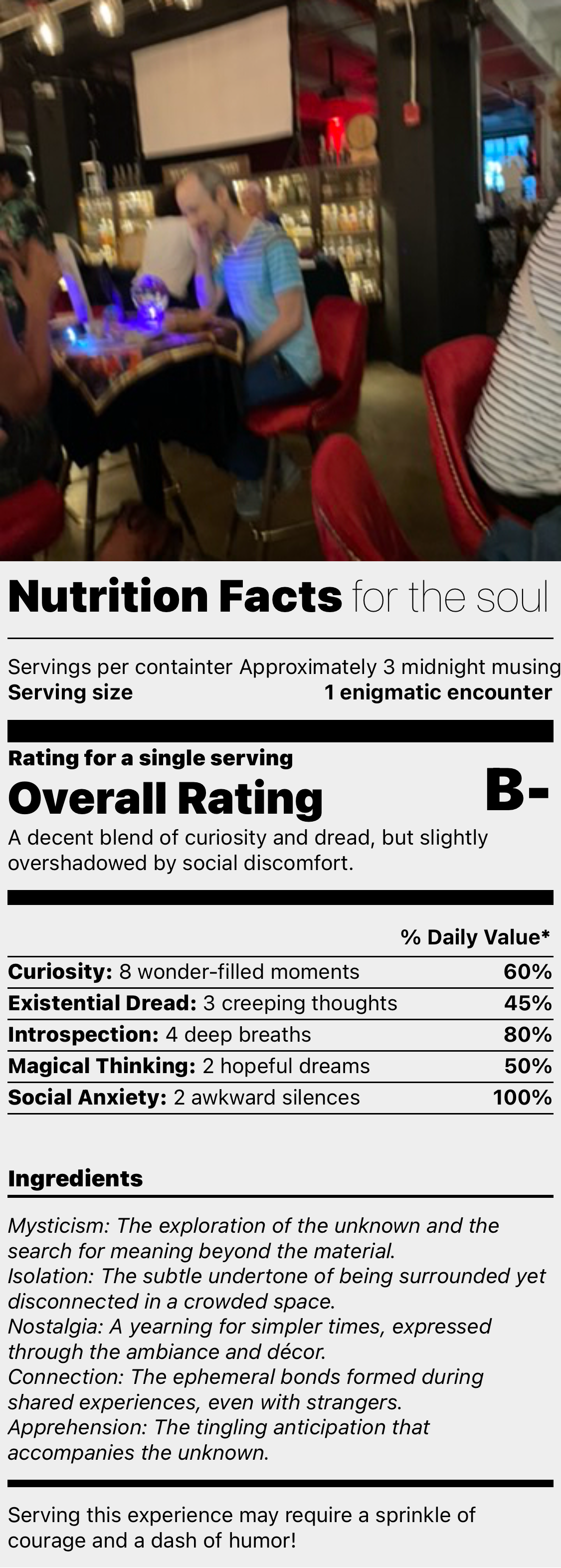label rating the spiritual quality of scene.