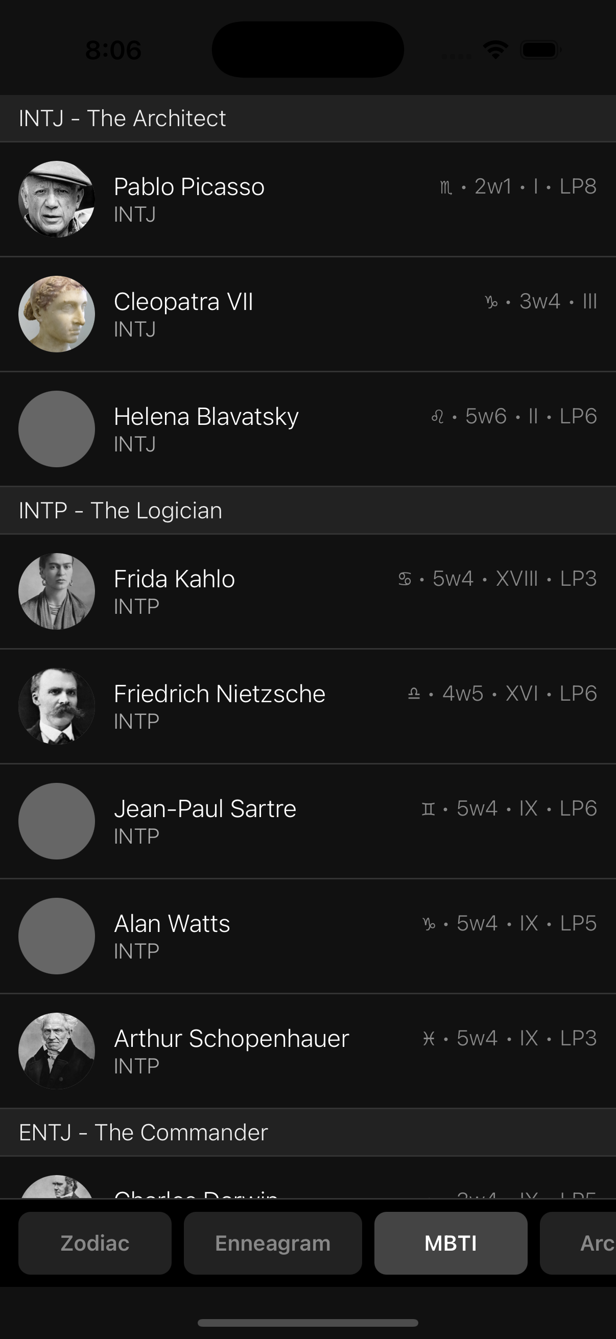 Zodiac, Enneagram, MBTI, Arcana, Numerology, more?